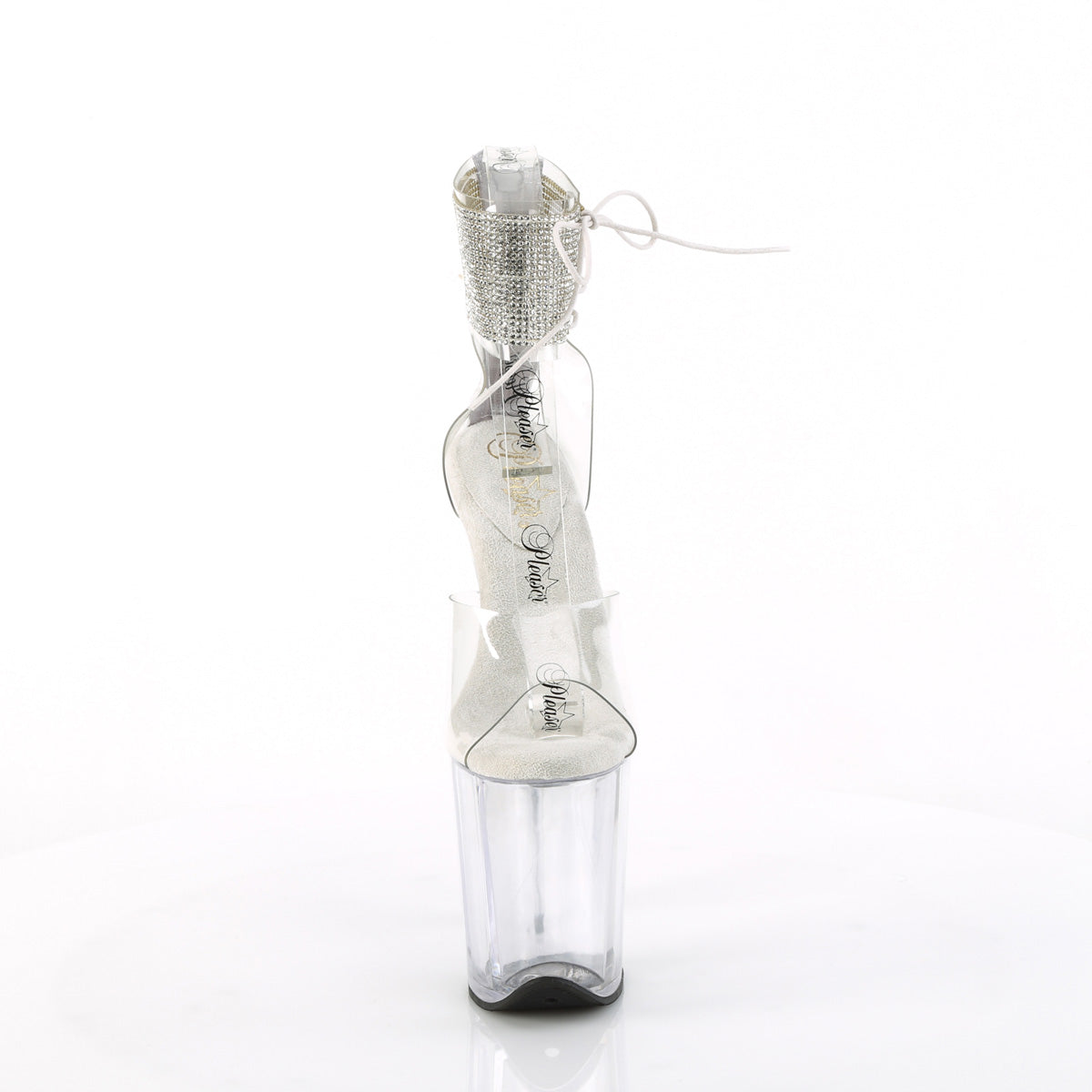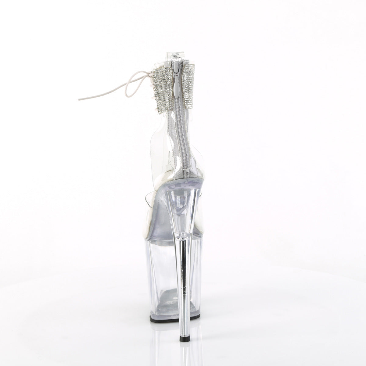 8"" (200mm) Heel, 4"" (100mm) Platform Close Back Rhinestone Embellished Ankle Cuff Sandal w/Side Lacing, Back Zip Closure