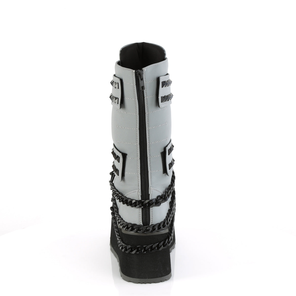DemoniaCult Mens Boots TRASHVILLE-138 Grey Multi Reflective Vegan Leather