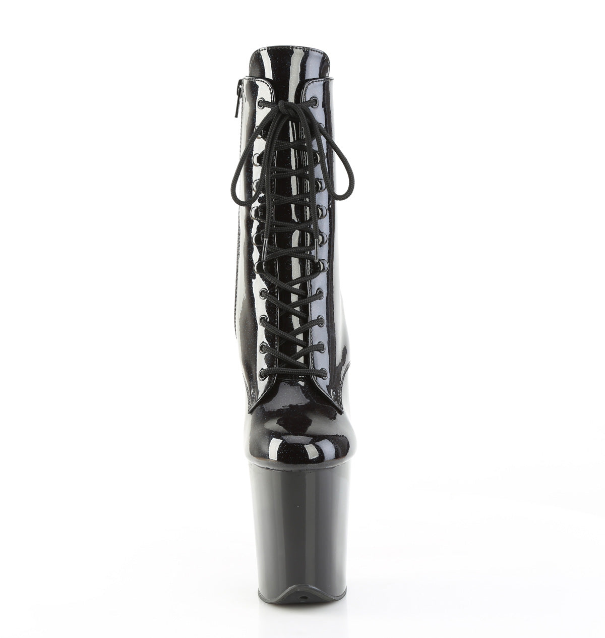 Additional Description 8"" (200mm) Heel, 4"" (100mm) Platform Lace-Up Front Ankle Boot, Inner Side Zip Closure