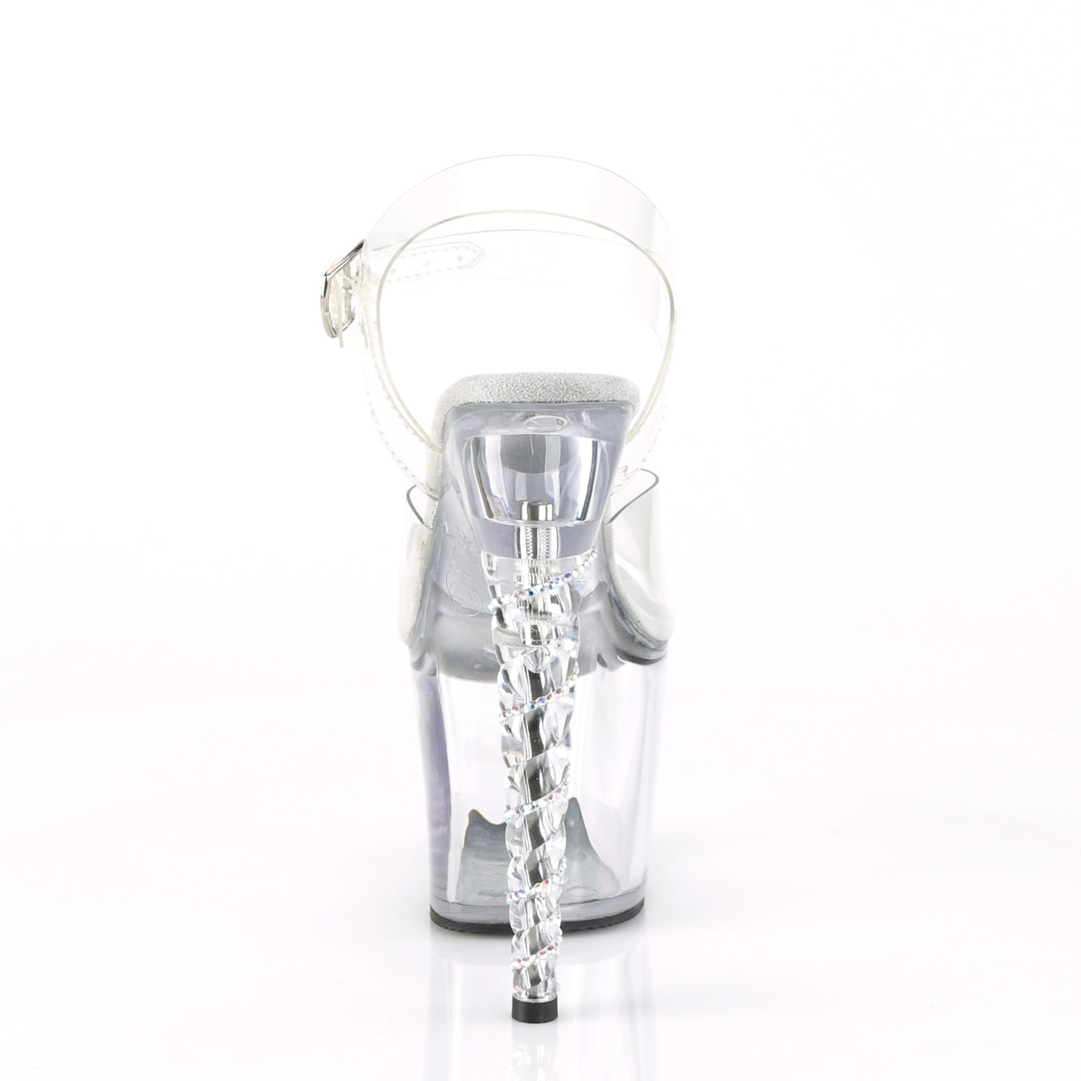 7"" (178mm) Unicorn Heel, 3 1/4"" (83mm) Platform Ankle Strap Sandal Featuring Spiral AB Rhinestone Lined Heel