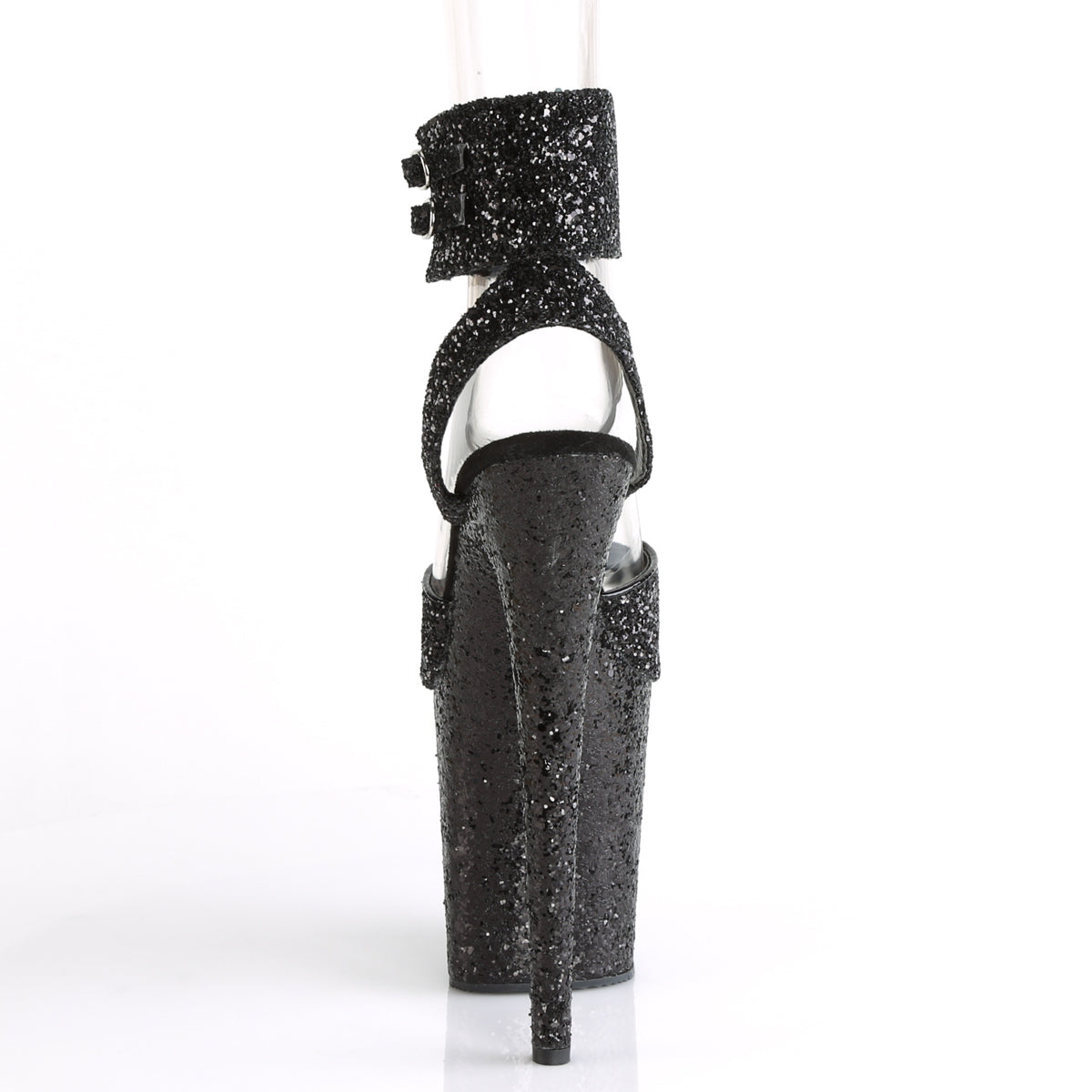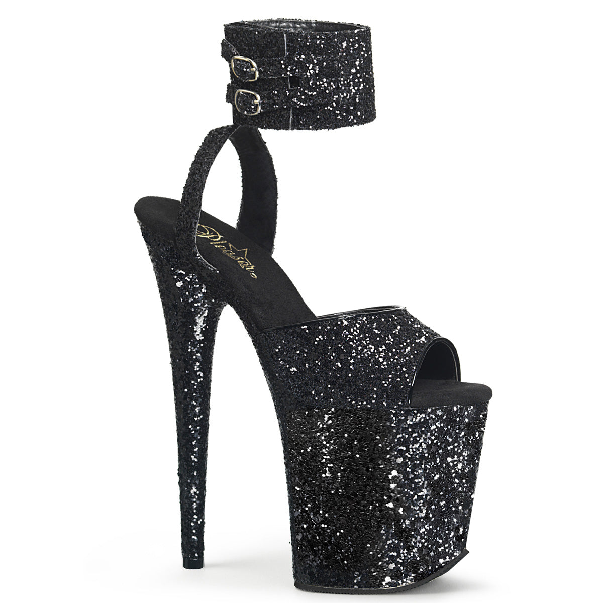 Additional Description 8"" (200mm) Heel, 4"" (100mm) Platform Glitter Ankle Strap Sandal Featuring Wide Ankle Band w/ Dual Buckle Straps