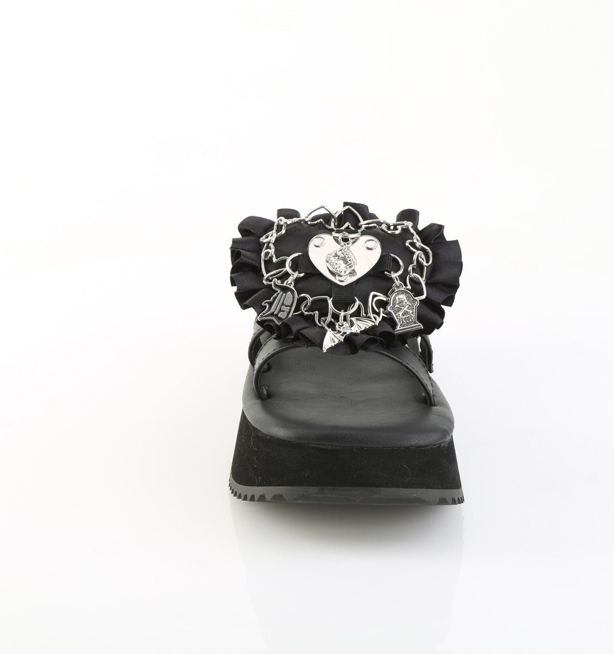 Name DemoniaCult Women's Sandals FLIP-16 Blk Vegan Leather-Satin