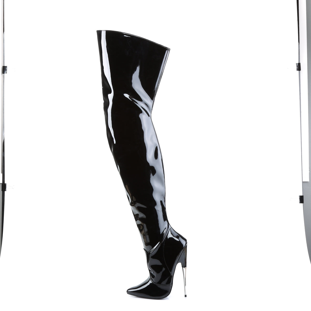 | Description | Botas de muslo de 6 "" (15.2cm) con tacón de acero, cierre de cremallera lateral interno completo |