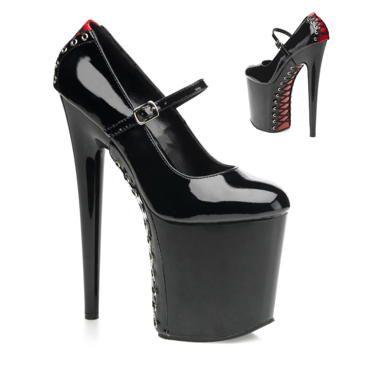 | Additional Description | 8 "" (20.3cm) Stiletto Heel, 4 "" (10.2cm) plataforma Mary Jane Pump Con el patrón de plataforma y encaje del talón |