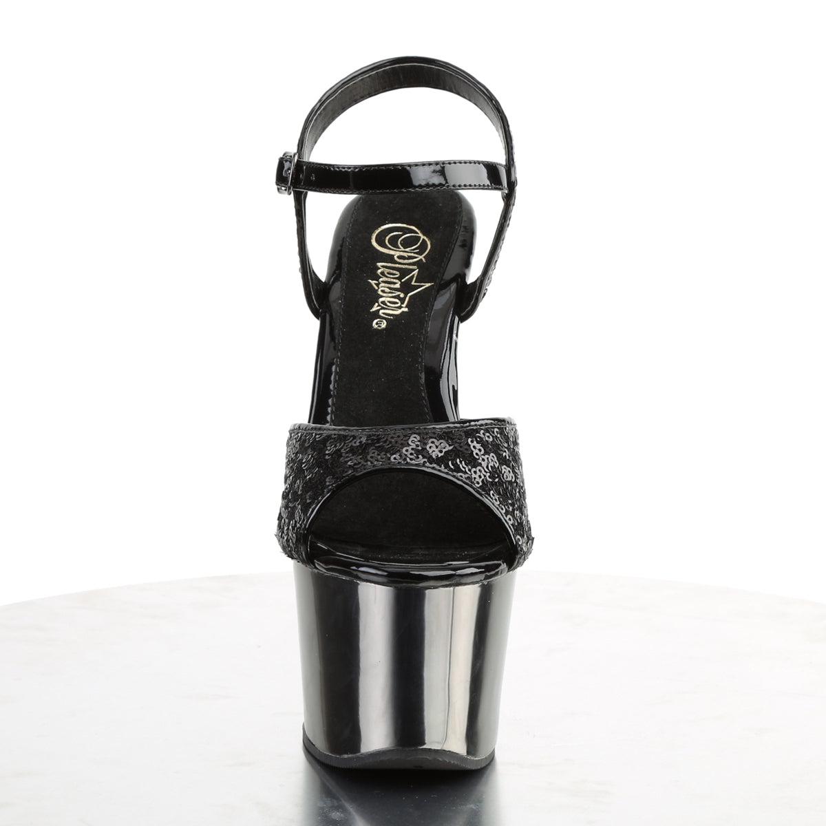 | Name | Pleaser Sandalias para mujer SKY-310SQ BLK LETINS / PEWTER CROME |