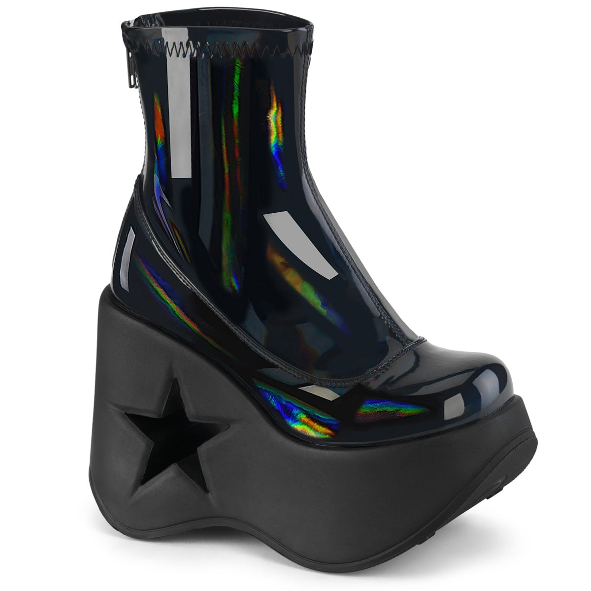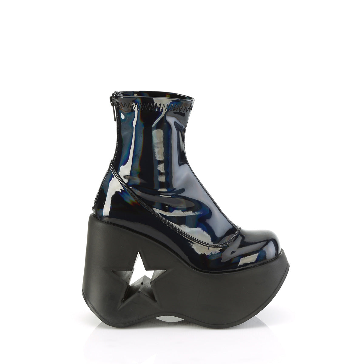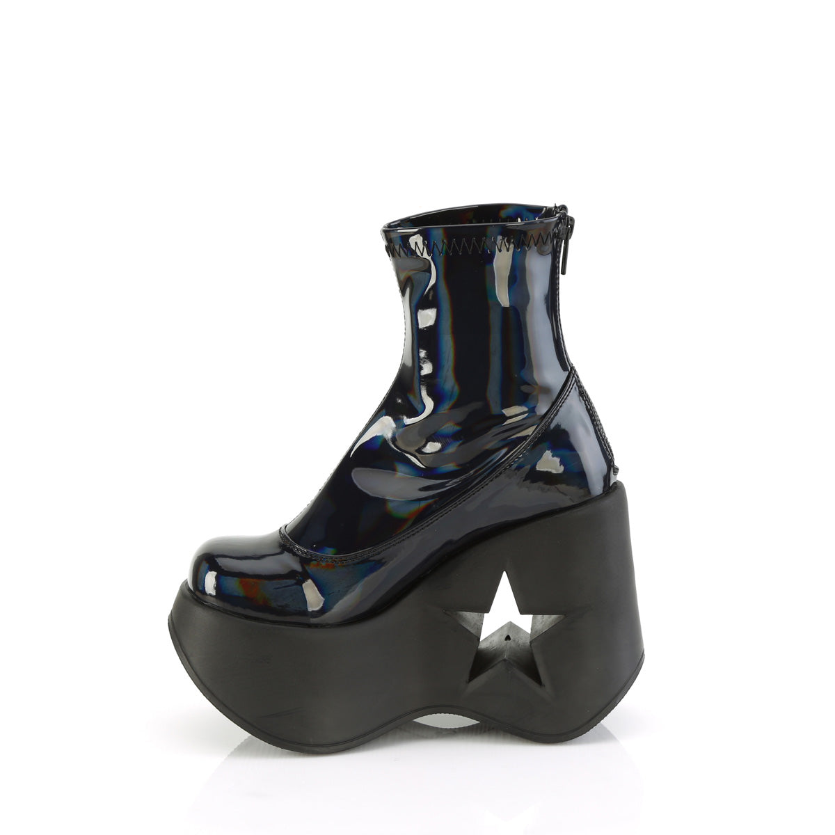 | Description | 5 "" (127 mm) Star Bota de tobillo estiramiento de cuña de plataforma de corte, cierre de cremallera de metal posterior |