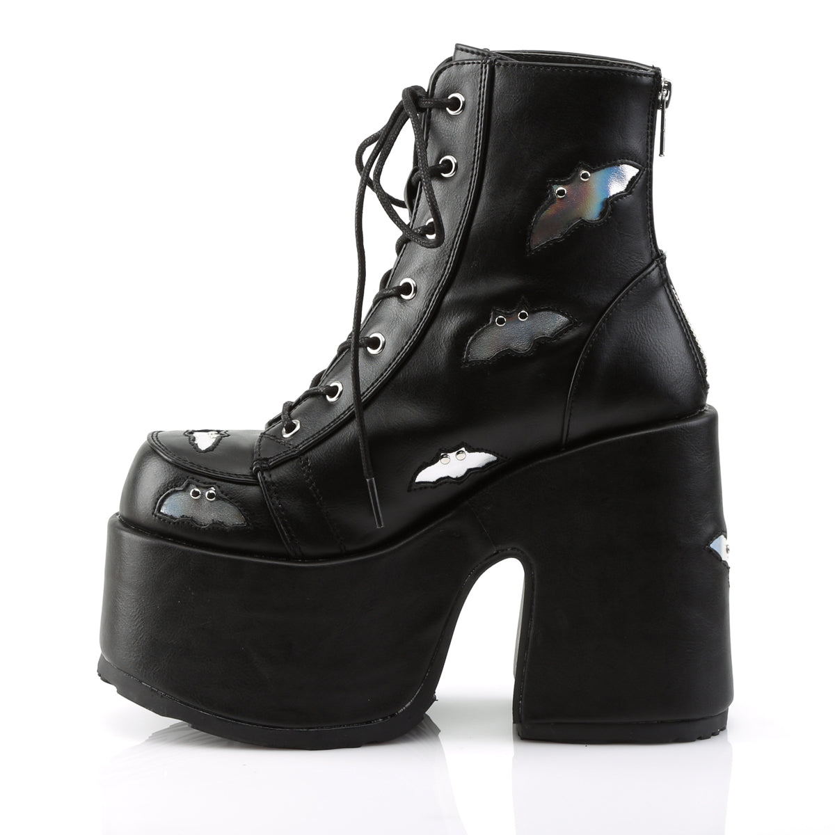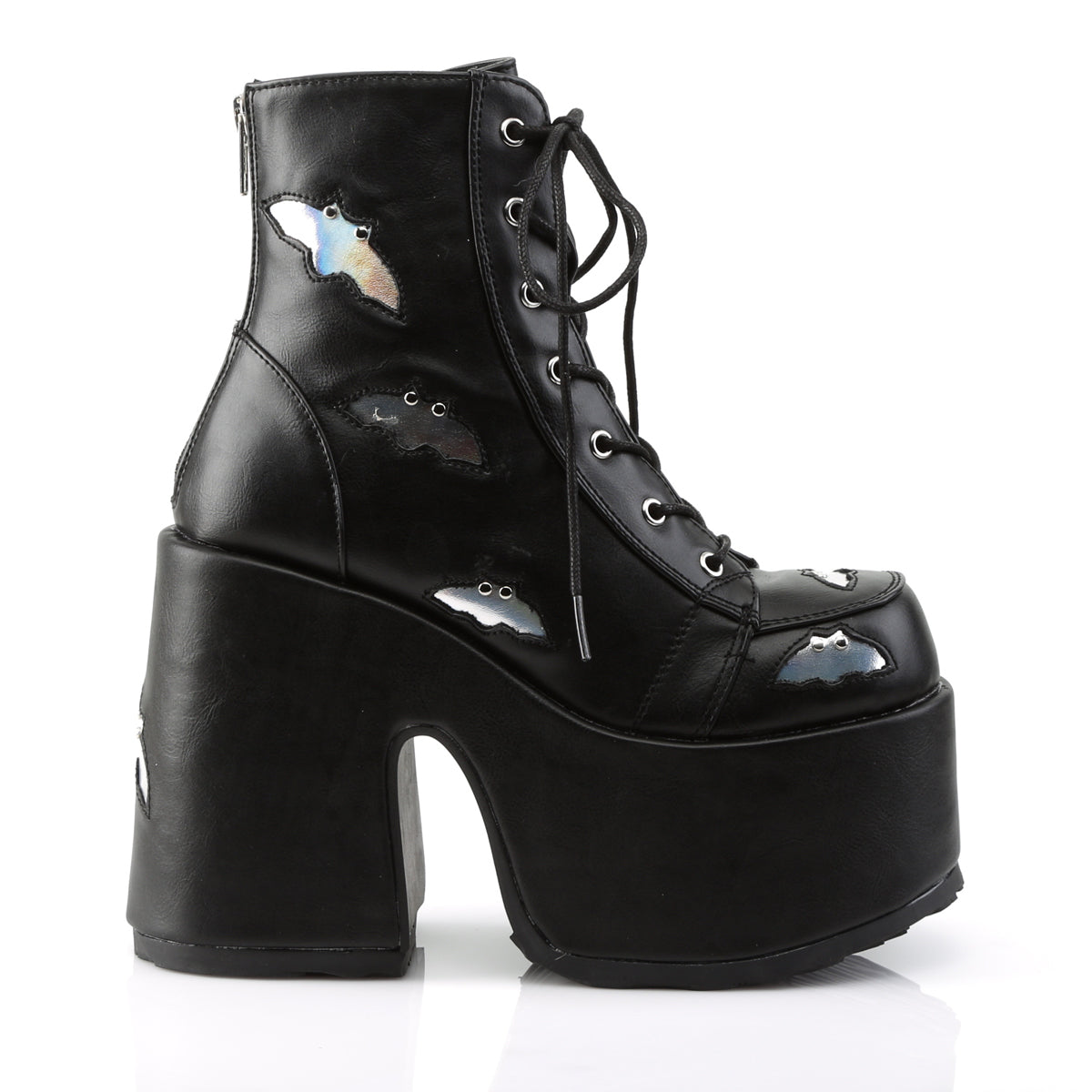| Name | DemoniaCult Botas de tobillo para mujeres CAMEL-201 BLK-SLV Hologram cuero vegano |