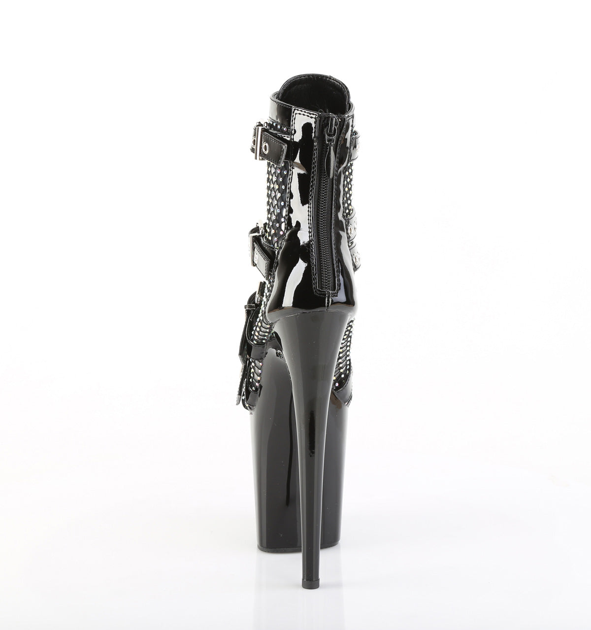 8" Heel, 4" PF Strappy Ankle Boot, Back Zip |