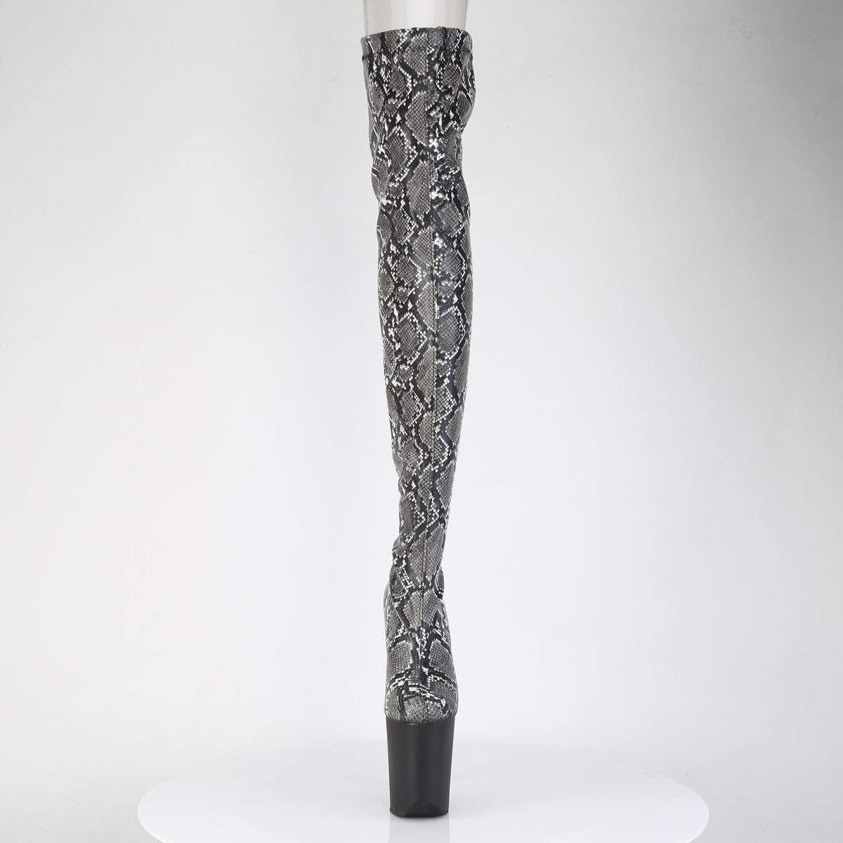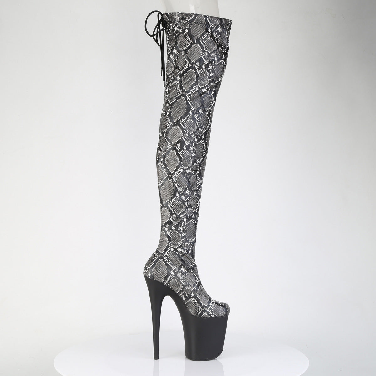 | Additional Description | 8"" (200mm) Heel, 4"" (100mm) Platform Platform Stretch Snake Print Pull-On Thigh Boot w/Rear Tie Fastening |