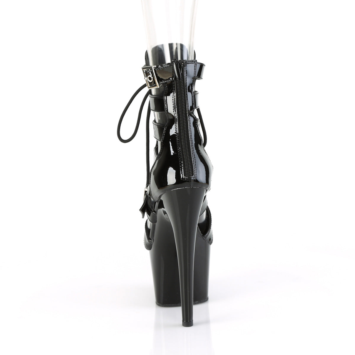 | Description | 7 "" (178 mm) Tacón, 2 3/4 "" (70 mm) Plataforma Strappy Dual Ajustable Strap-Up Bootie de jaula delantera, cierre de cremallera trasera |