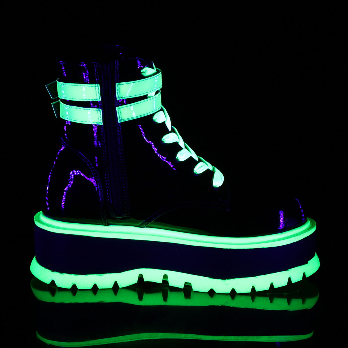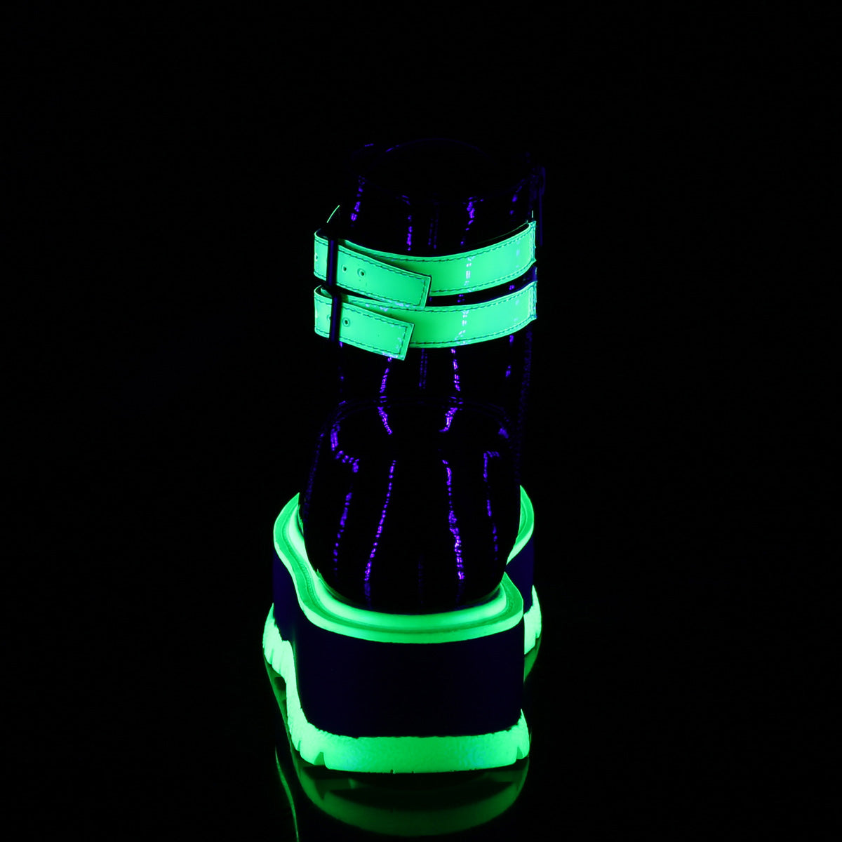 DemoniaCult Botas de tobillo para mujeres SLACKER-52 Blk Pat-UV Green iridiscente